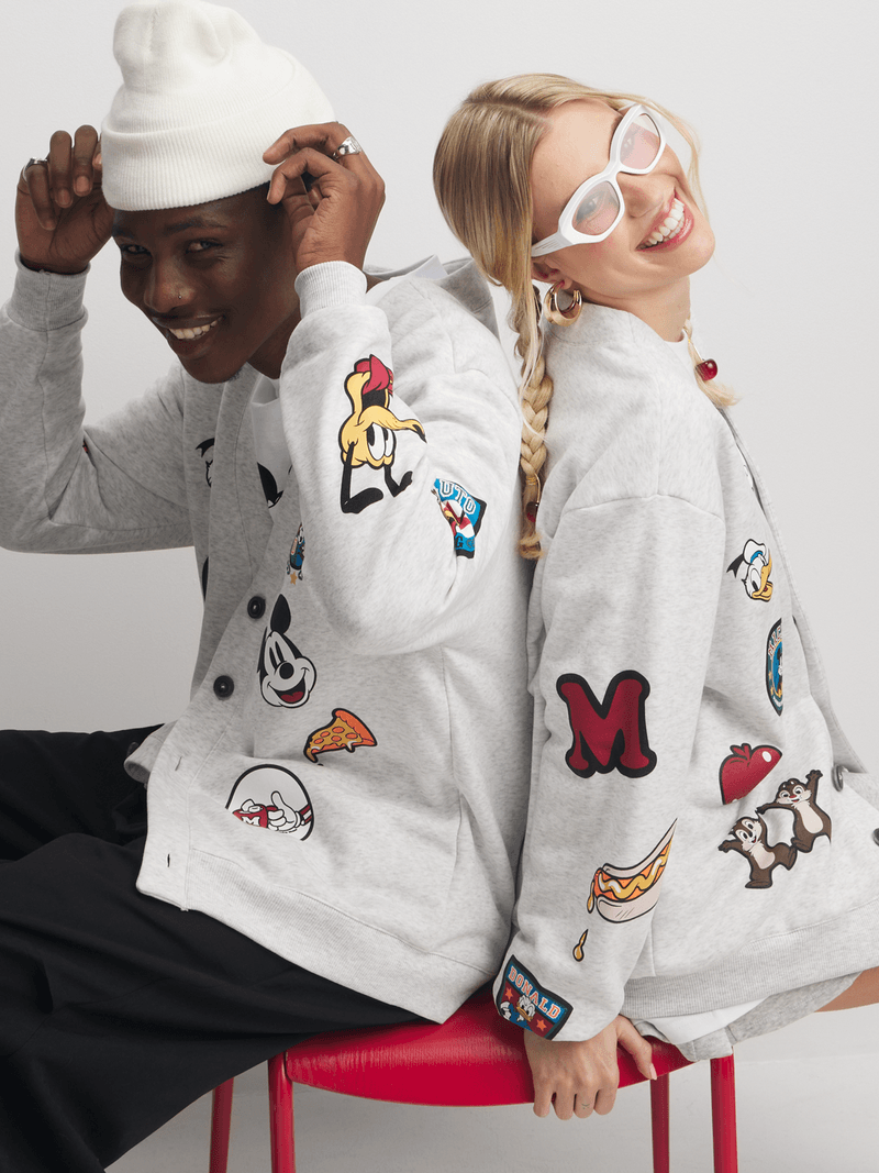 This ain't your regular cardi – it’s a whole toon takeover with Mickey front and centre. Featuring a soft brushed fleece fabric with a playful patched graphic print, oversized fit for a relaxed look. Perfect for adding a touch of fun to your outfit. Oh boy, this fit’s a vibe!