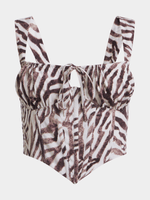 Get ready to turn heads in this animal print top. Featuring woven fabric with a trendy corset design. Style it with it's matching pants, strappy heels & some cute accessories. Your good to go girl!.