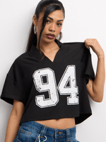 Get your hands on this trendy black boho graphic tee. Featuring a rib fabric, boxy fit & v-neckline. Pair with a wide leg jeans & some sneaks to complete the look. This t-shirt is sure to become your new favorite.