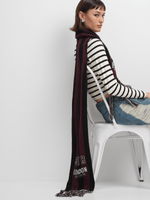 Wrap yourself in style with The FIX women's black and burgundy striped scarf! Made of durable polyester, this printed scarf adds a touch of urban flair to any outfit. Stay cozy and chic with this versatile accessory that's perfect for any season.