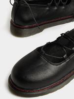 Elevate your style with these black chunky lace-up ballerina shoes. Made with premium PU material, these shoes offer comfort and style in one fabulous package. Perfect for any occasion, these trendy shoes are a must-have for your shoe collection. Step out in style with The FIX.