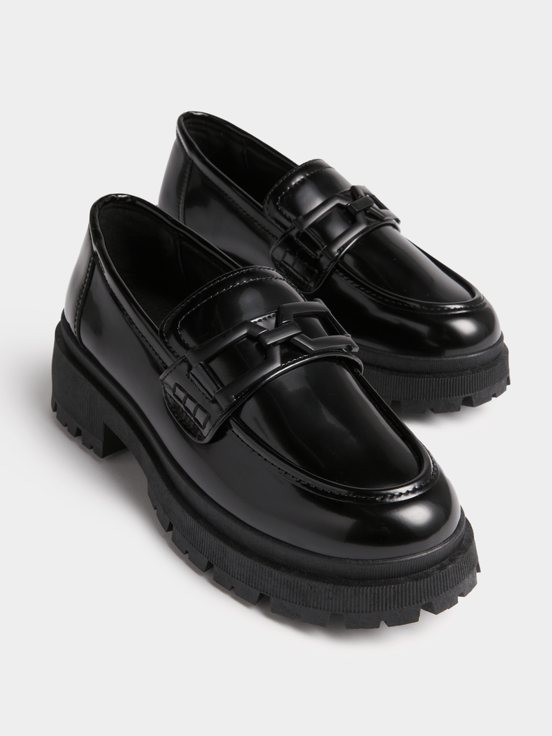 These black loafers are not here to blend in. Featuring a PU fabric that's chunky, edgy, and bossed up—perfect for stomping through your day like you own it. Whether it’s campus, the streets, or the 'fit check mirror, they add instant drip to any look.
