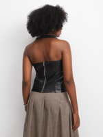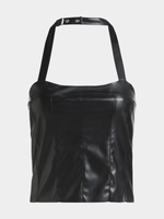 This top is everything we're loving. Featuring a black pu fabric and the panel detail that sculpt just right, it’s giving body, confidence. Pair it with baggy jeans, or a mini, or your fave denim—it’s serving effortless slay no matter what!