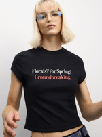 Introducing our stylish Black Florals Devil Wears Prada Cotton Lycra Baby Tee! Made from a comfortable cotton blend, this tee features a crew neckline and short sleeves.