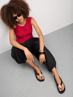 Indulge in luxury with our black thong featuring elegant gold trim. Made with high-quality PU material, this comfortable and stylish design is perfect for everyday wear. Enjoy the rewards of timeless sophistication with this chic addition to your wardrobe.