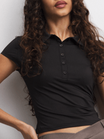 The black Johnny collar top is a vibe— featuring a snatched fit, stretch viscose blend fabric and a cute Johnny collar. Baby tees out, collar tops in.. Pair it with the set or switch it up—either way, you’re winning babe!