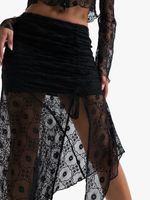 This skirt is the hottest around rn. Featuring a lace fabric, sexy ruched design, you can rock this bad boy with its matching top and be sure to drop jaws babygirl! We're obsessed!