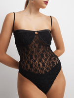 Add this must-have black bodysuit to your wardrobe because it's perfect for all occasions. Featuring a ITY fabric and lace design. Team with your favorite bottoms for a cute look.