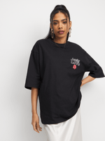 This tee is what we're vibin' with this szn. Featuring a black single jersey fabric, front graphic print and short sleeves. Pair with jeans and sneaks to complete the look.