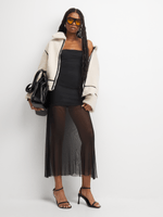 Elevate your style with The FIX women's black mesh bandeau midaxi dress. Made from comfortable ponti fabric, this dress is perfect for any occasion. Stand out in this statement piece.