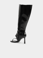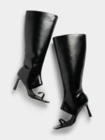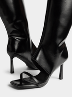 Step up your shoe game with The FIX black over the knee peep toe boot. Made with stylish PU material, this boot features a single strap for added flair. Perfect for any outfit, this boot will take your look from drab to fab in seconds. A must-have addition to your footwear collection.