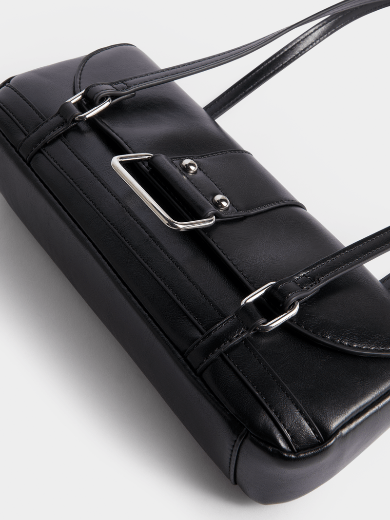 Elevate your style with the sleek and chic women's black rectangle buckle bag from The FIX. Made with high-quality PU material and featuring a trendy rectangle buckle closure, this bag is perfect for everyday essentials. Stay organized and on-trend with this versatile accessory.
