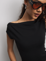 This black top is a vibe— featuring a snatched fit, stretch rib fabric and a boat neck neckline. Pair it with a cute mini skirt or shorts —either way, you’re winning babe!