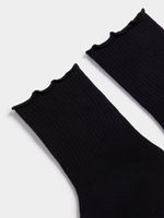 Elevate your sock game with our ribbed lettuce socks in classic black. Made with a blend of poly-cotton and polyester for ultimate comfort and durability. Perfect for everyday wear, these socks feature a stylish lettuce edge detail.