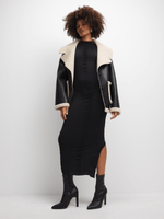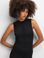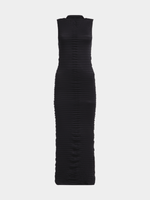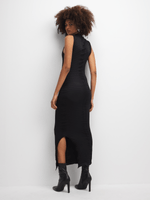 Get ready to turn heads in this stunning black dress. Featuring a seamless textured fabric, turtle neckline and sexy side slit. Step out & serve body without saying a word.