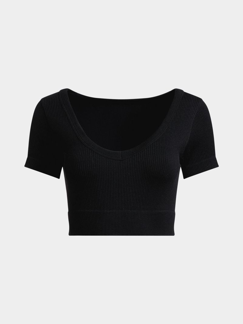 This crop top is everything we are loving for the upcoming season. Featuring a black seamless fabric and wide band for that extra snatched fit. Style with a cute skirt or jeans and sneakers for a fresh finish.