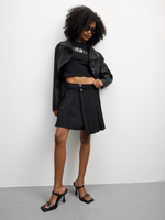 Elevate your style with the versatile Shaakira Asym Pleated Mini Skirt. Made from high-quality crepe fabric, this skirt features a unique asymmetrical pleated design that adds a touch of flair to any outfit. This skirt is a must-have for your wardrobe.