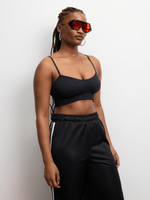 Elevate your ensemble with the FIX textured cami top in black. This seamless top features a flattering sweetheart neckline and a textured design for added style. Perfect for layering or wearing on its own, this top adds a touch of sophistication to any outfit.