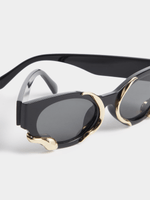 These black-trimmed sunnies are giving "don’t talk to me unless it’s VIP" energy. Featuring a stunning metral trim design, these are perfect for that bougie look.