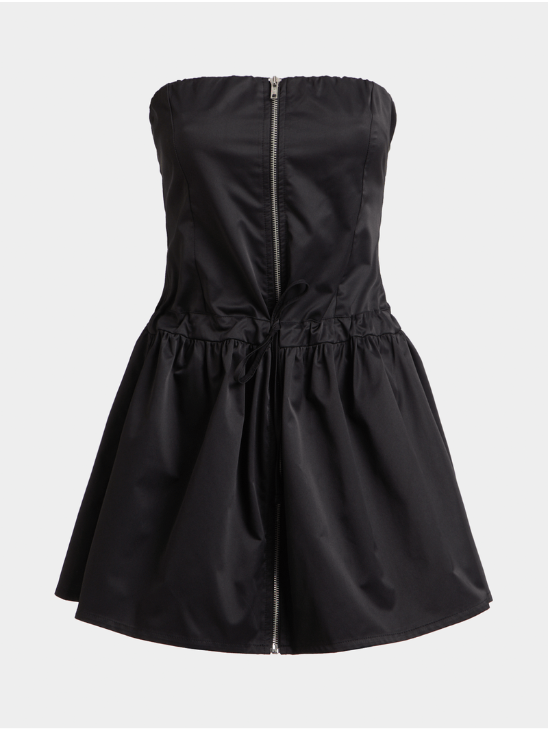 Get ready to turn heads in the versatile black utility bandeau mini dress from The FIX. Featuring a taslon fabric, this dress features a flattering silhouette. Perfect for any occasion, it's easy to style and a must-have in your wardrobe.Keeping you effortlessly chic.