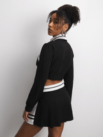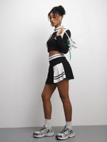 Elevate your style with The FIX black and white pleated mini skirt. Made from crepe fabric for a chic look. Features a trendy inset & band detail. Pair with the matching top. Perfect for a fashion-forward wardrobe.