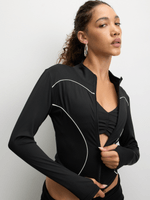 Stay cozy and chic in our Women's Black Zip Front Turtleneck Top. This polyester blend top features a stylish turtle neck and long sleeves. Perfect for everyday wear. Enhance your wardrobe with this versatile top.
