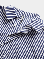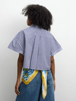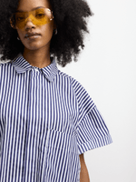 Introducing our blue stripe boxy cropped shirt for a laid-back and stylish look. Made from a poly-cotton blend for a comfortable fit. Perfect for any casual outfit.