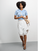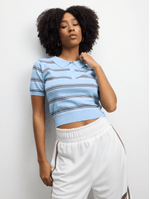 Elevate your casual wardrobe with The FIX Women's Blue Striped Johnny Collar Top. Made from a comfortable viscose blend, this stylish top features a unique striped design and a Johnny collar for a chic look. Perfect for everyday wear.
