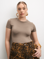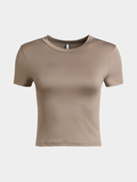 The Bronze Crew Top is a must-have for any wardrobe. Made from cool ITY fabric, this top features a classic crew neck and short sleeves. Perfect for everyday wear.
