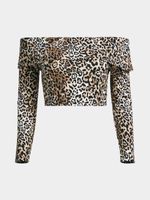Add this cute top to yo' new season 'drobe. featuring a rib fabric and animal print design. Complete the look with your fav pants or cute mini for a look we loving.
