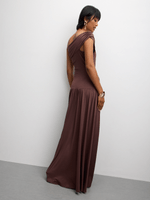 Look effortlessly stylish in our chocolate brown bardot drapped waist maxi dress. Made from ITY fabric, this dress is perfect for any occasion. Feel confident and comfortable in this flattering dress.