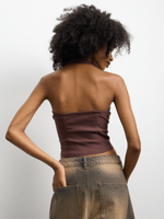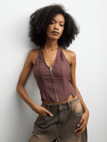 Step out in style with our FIX brown Bengaline zip-through top. Featuring a rayon fabric, a halterneck neckline and a front zip-up design. Perfect for any occasion, this top is sure to become a staple in your wardrobe.