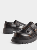 These brown loafers are not here to blend in. Featuring a burnish pu fabric & a statement front fringe detail that's chunky, edgy, and bossed up, —perfect for stomping through your day like you own it. Whether it’s campus, the streets, or the 'fit check mirror, they add instant drip to any look.