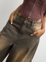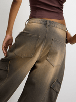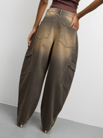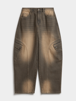 Elevate your style with The FIX's brown cargo barrel denim pants. Made with durable denim fabric. Perfect for any casual occasion, these cargo pants are a versatile addition to your wardrobe. Upgrade your outfit with these trendy and practical pants.