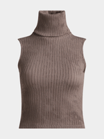 This mocha coloured co-ord top’s got that off-shoulder energy and soft stretch feel. Featuring a soft plisse fabric, this sleeveless top features a unique funnel neck for a touch of sophistication. Pair it with your favorite bottoms for a chic and stylish look.