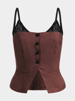 Featuring a polyester fabric, front button up & lace peep out, this waistcoat goes perfect with a pants and a dope heel. All you have to do is accessorize and hit the streets.