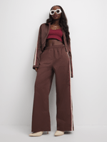 Elevate your casual style with this brown co-ord pants. Featuring a taslon fabric, wide leg fit, & pull on with side panels design. Perfect for any occasion, from running errands to a night out, this is a must-have addition to your wardrobe.