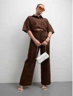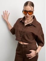 Upgrade your wardrobe with our Women's Brown Denim Oversized Shirt. Made from high-quality denim fabric, this shirt is perfect for any casual occasion. Elevate your look with this versatile piece.