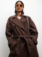 Stay warm and stylish with our women's melton double flap trench coat in chocolate brown. Made of high-quality polyester and melton, this coat is both cozy and durable. Features double-breasted buttons and a classic trench design. Perfect for any outfit!