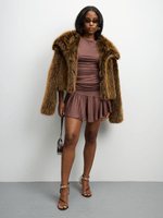 Get ready to turn heads in our brown mini ruched dress. Made from ITY fabric, this dress features flattering ruching and a cool wash maintenance routine. Perfect for a night out, the dress is designed to make you feel confident and stylish. Don't miss out on adding this versatile piece to your wardrobe.