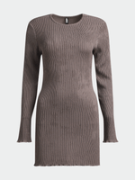 Turn heads in our brown open-back mini dress! Made from cool-wash plisse fabric, this dress is perfect for any occasion. The crepe material drapes beautifully.