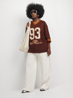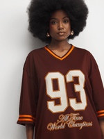 Introducing our cozy and trendy brown graphic top made from birdseye fabric. This oversized tee is perfect for a relaxed and stylish look. Features a unique 93 choc design. Add a touch of flair to your outfit with this must-have piece.