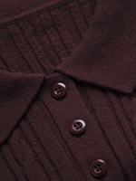 Stay cozy and stylish in our brown knit cable long sleeve polo top. This top features a classic polo design with a cable knit texture. Perfect for everyday wear.