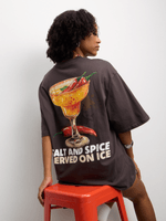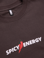 Boost your energy with our brown Spicy Energy graphic top. Made from soft cotton single jersey fabric, this crew neck tee features a cool wash design. Perfect for adding a touch of flavor to your wardrobe.