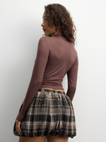 Stay cozy and stylish in our brown turtle neck top. Made from soft poly knit fabric, this long-sleeved top features a classic turtle neck. Designed for a flattering fit. Perfect for any casual or dressy occasion.