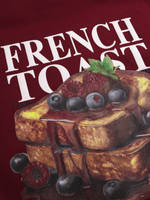This top is straight fiyah! Featuring a burgundy brushed fleece fabric, a dope ' French Toast' front & back graphic print with cuffed sleeves. Pair it with some dad jeans or cute skirt and sneakers for the complete fit!