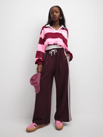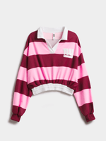 Elevate your casual style with The FIX striped rugby top. Featuring a burgundy and pink color palette. Made from polyester, it boasts a Johnny collar and long sleeves for a relaxed vibe. Enjoy the comfort in every wear.