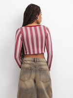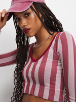 This top is everything we are loving for the upcoming season. Featuring a burgundy seamless fabric, long sleeves and crop fit. Style with a cute skirt or jeans and sneakers for a fresh finish.