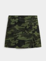 Be that stylish hun' in this A line mini skirt. Featuring a green camo print, mini length and front slit. Style it with a cropped top, sneakers and a shoulder bag for a look we love!