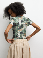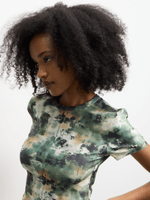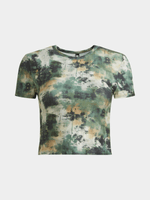 Get ready to rock this camo print baby tee! Made from comfortable poly knit fabric, this tee features a trendy crew neck and short sleeves. Stand out in style with our Women's Camo Print Baby Tee.